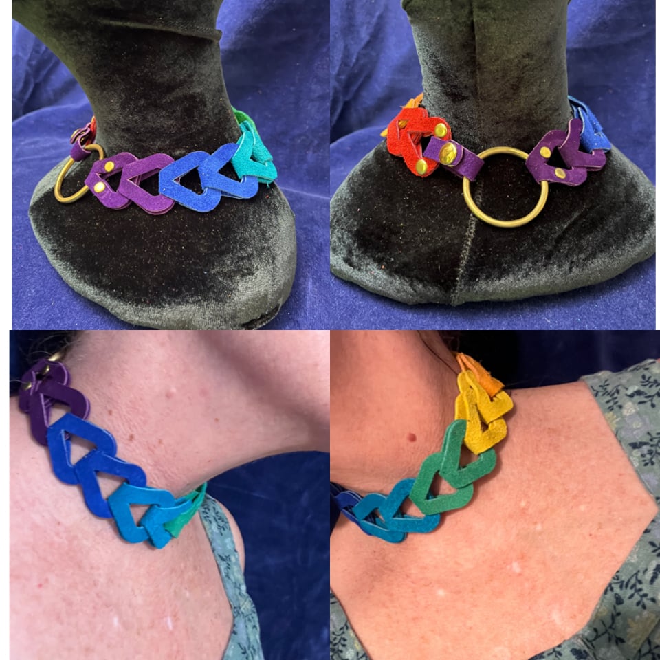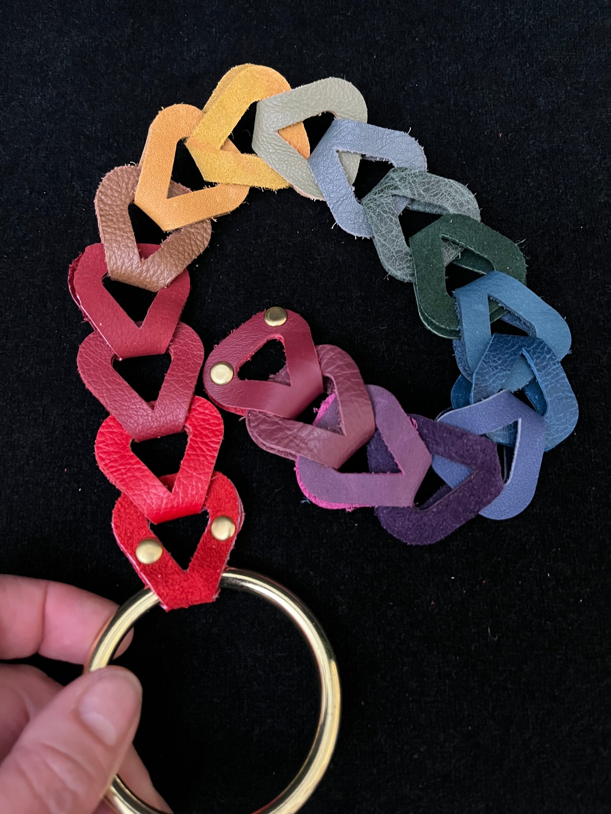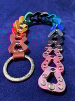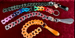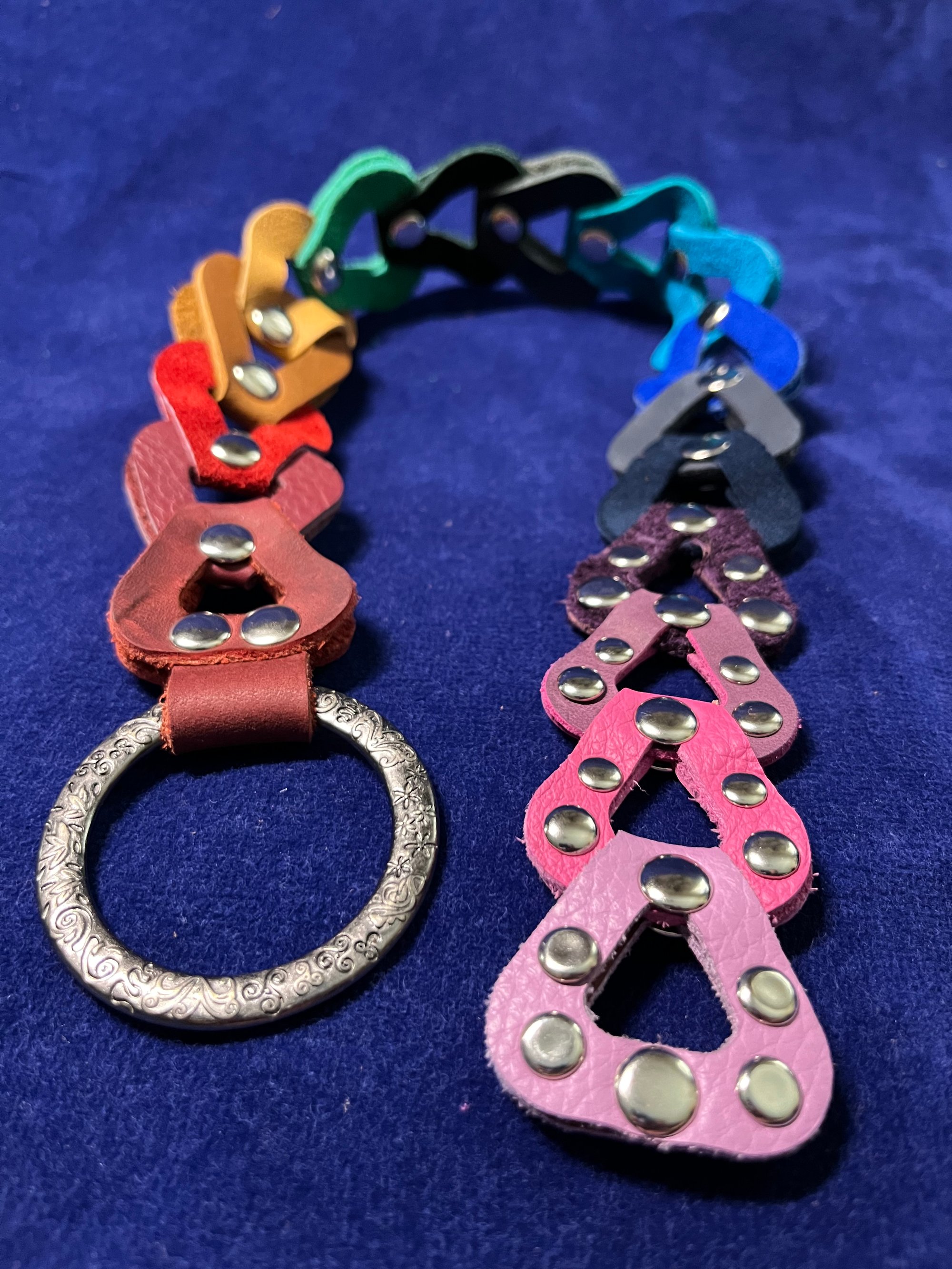 Leather chain with rivets Attached to a ring. Swing it with your fingers through the ring, has an impact toy, very stingy. It comes with a snapped loop so that you can wear it wrapped around an arm or as a collar.